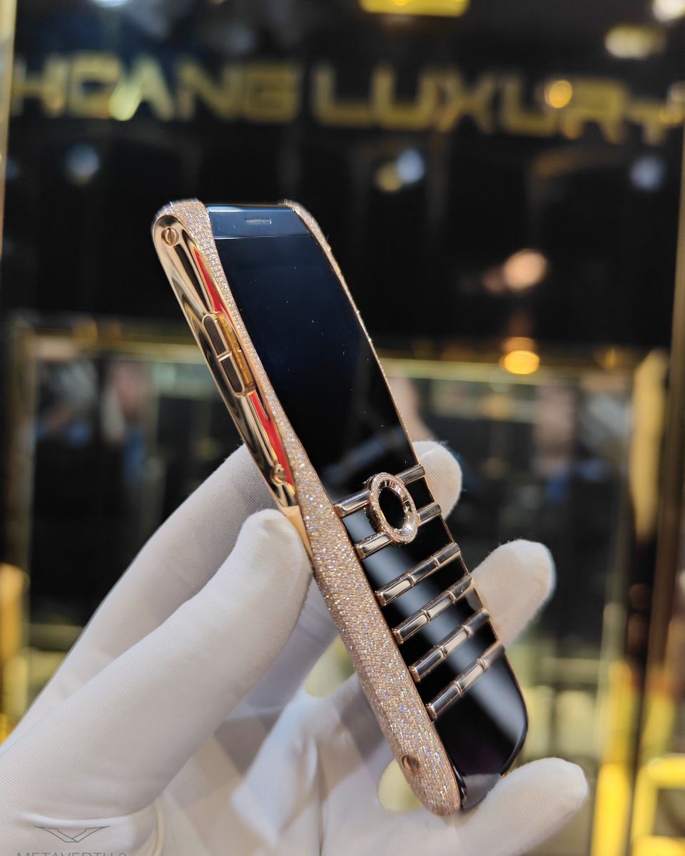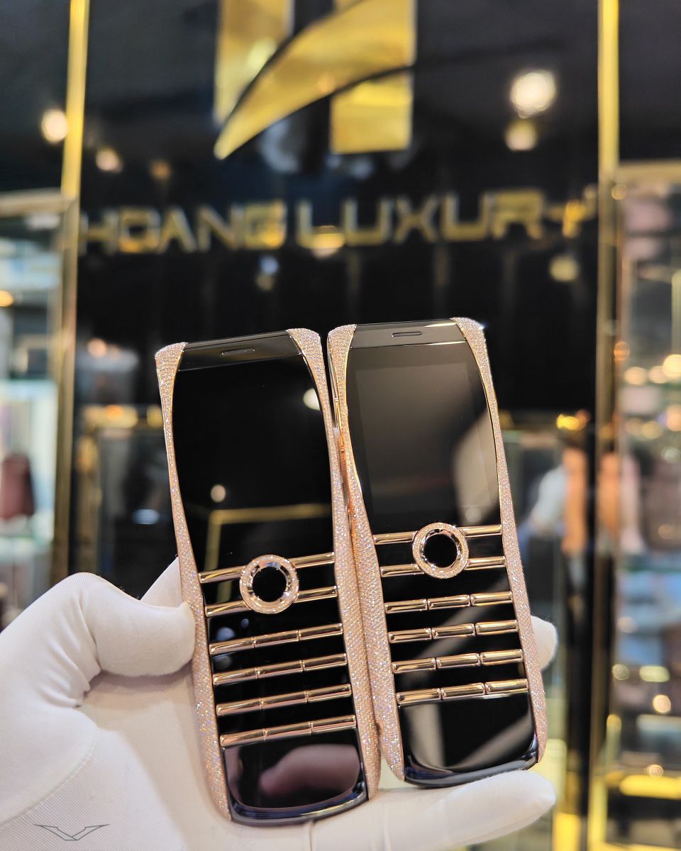 KHUNG MÁY: Thiết kế hoàn toàn bằng Chất vàng khối 18k sang trọng - chất liệu duy nhất không phai màu theo thời gian. Đặc biệt hơn, khung máy được đính full kim cương thiên nhiên đắt đỏ. Càng làm tăng giá trị cho cây máy.