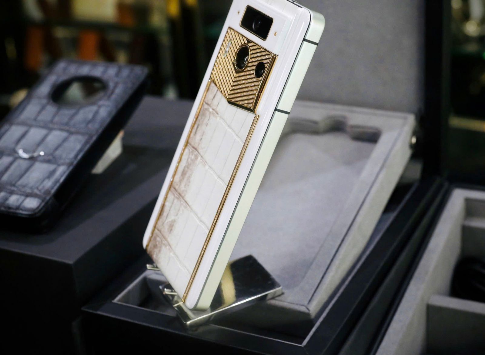 METAVERTU 2ND GENERATION LUXURY CUSTOM MADE GOLD PLAIN WEAVE WITH DIAMOND HIMALAYA ALLIGATOR WHITE LIKE NEW kết hợp giữa công nghệ cao cấp và thiết kế sang trọng, chắc chắn là thiết bị di động đẳng cấp mang lại trải nghiệm đẳng cấp và hiệu suất mạnh mẽ cho người dùng.