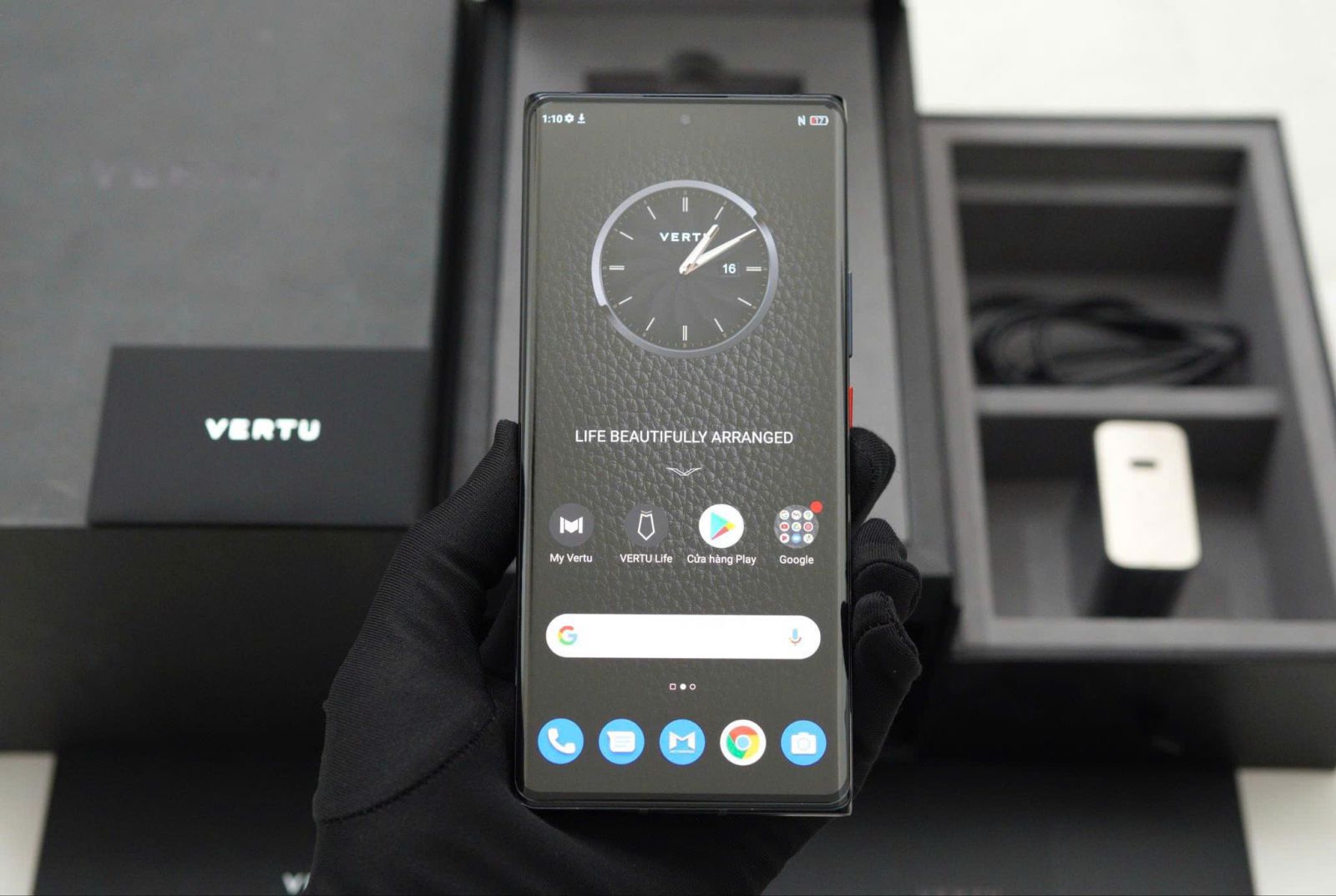 Bên cạnh đó, chiếc điện thoại này cũng được hoàn thiện từ những vật liệu cao cấp, bền bỉ và chắc chắn. Phần khung của thiết bị được hoàn thiện từ gốm, mặt sau được làm từ loại da đắt tiền, quý hiếm. Mọi thứ đều được trải qua một quy trình sản xuất, quản lý nghiêm ngặt để tạo nên sản phẩm chất lượng. Ngoài ra, màn của chiếc điện thoại này cũng bằng kính sapphire đặc trưng của điện thoại Vertu. Đây là chất liệu có tác dụng chống trầy xước hiệu quả và thường được trang bị cho các loại xe cũng như đồng hồ hạng sang.