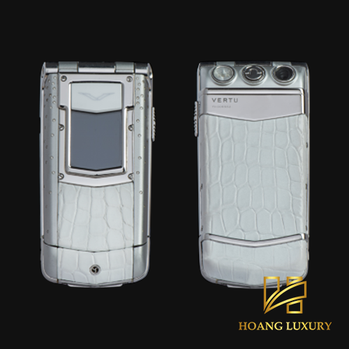 Vertu Ayxta da cá sấu trắng kim cương sinh ra là để dành cho những quý ông đẳng cấp, những quý bà sang trọng bởi chiếc áo choàng màu trắng thanh lịch đến từ lớp da cá sấu mềm mịn, độc nhất vô nhị. Hơn thế, máy còn được gắn kim cương lấp lánh, góp phần tôn vinh lên vẻ đẹp sang trọng của chủ sở hữu. Thêm vào đó, màn hình và phím bấm được làm từ Sapphire, có khả năng chống xước gần như tuyệt đối trừ kim cương. Và vẫn là huyền thoại Ayxta khi thao tác đóng mở máy hoàn toàn đơn giản, dễ dàng nhờ hệ thống lò xo và chốt cầu thép không gỉ, bàn phím điêu khắc tỉ mỉ cùng hệ thống chiếu sáng âm phím xuyên thép tạo hiệu ứng  vô cùng độc đáo mà hiếm có một sản phẩm công nghệ nào có thể làm được đã biến Ayxta thành một kiệt tác nghệ thuật bất chấp không gian và thời gian.
